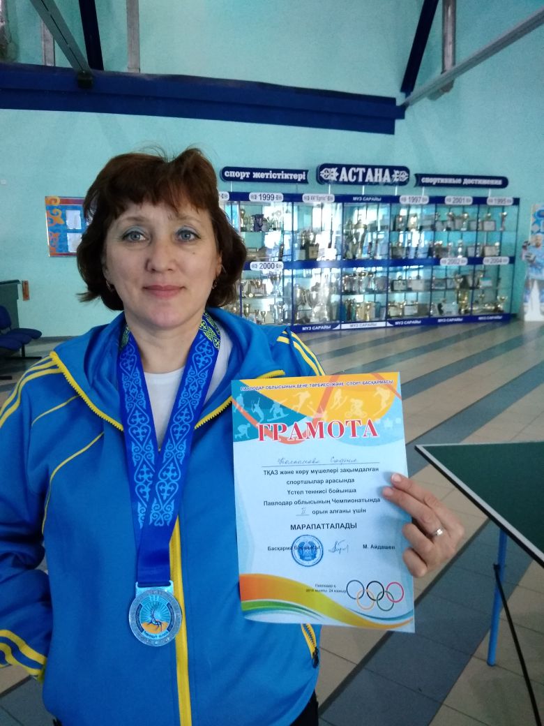 В Павлодарской области прошел чемпионат по настольному теннису. Призовое II- место завоевала наша м/с Колпакова С.Н.