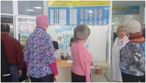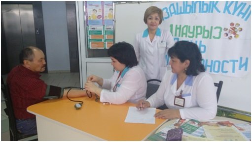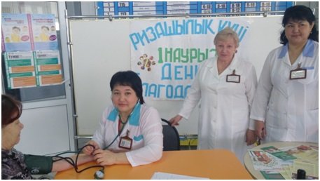Начиная с 2016 года, в Казахстане празднуется новый праздник – День благодарности, установленный указом Президента Республики №173 от 14 января 2016 года. Этим же документом утверждена и дата его официального ежегодного празднования – 1 марта. В День благодарности и в поликлинике Аксуской центральной больницы проведена широкомасштабная акция: был организован «Городок Денсаулық» с оформлением холла поликлиники, функционировал пост измерения артермального давления, на столиках были разложены информационно-образовательные материалы по профилактике факторов риска. Пациенты с факторами риска были проконсультированы по правилам рационального питания, адекватной физической нагрузки и по выполнению предписания участкого врача. Охват составил 64 человека.