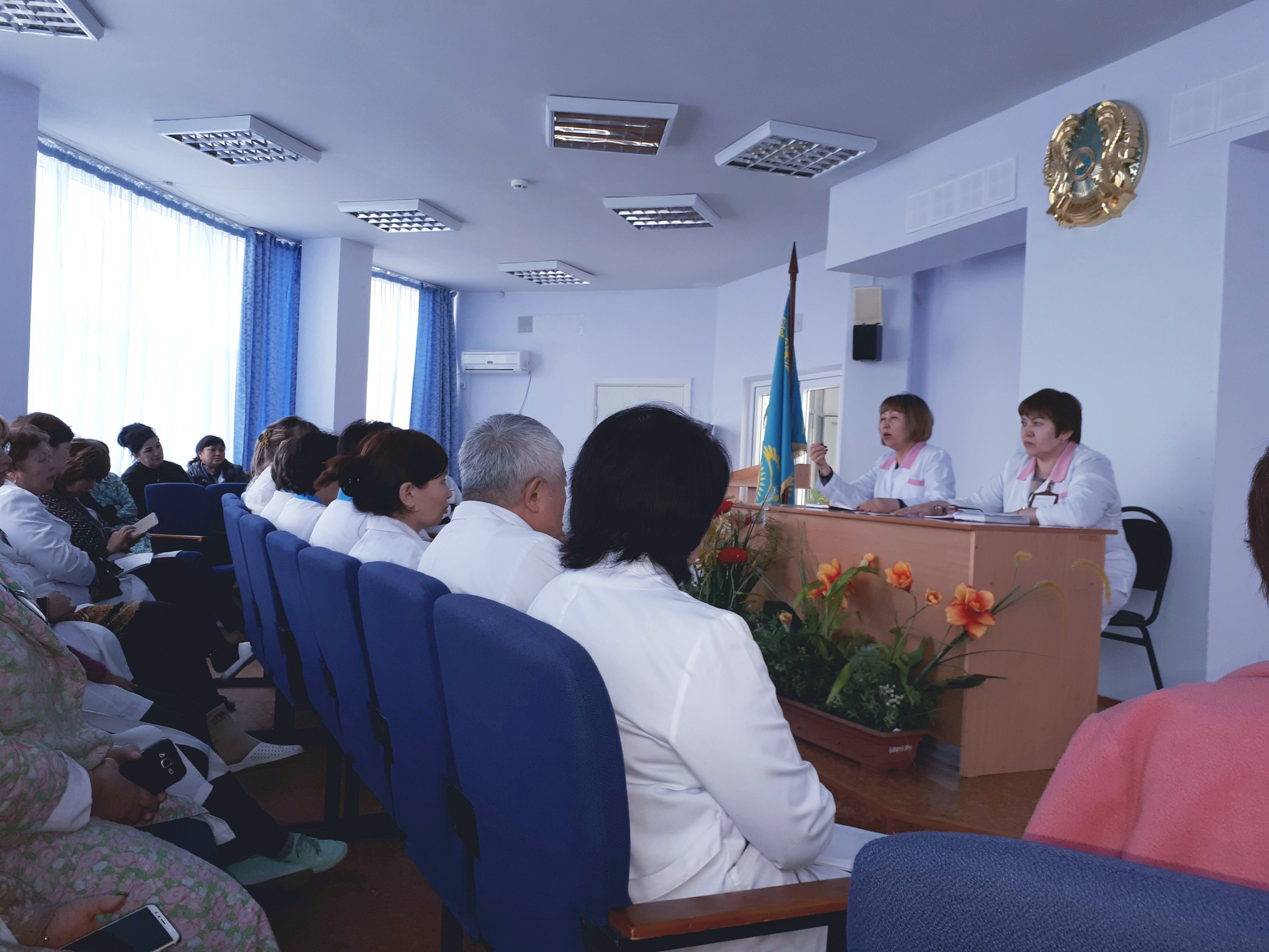 В актовом зале поликлиники Аксуской центральной больницы 17.05.18г главным врачом Нуралдиновой Б.С. и заместителем главного врача по лечебно-профилактической работе Байгалиевой А.М. с медицинскими работниками всех уровней проведена разъяснительная работа «Дорожная карта по цифровизации здравоохранения Павлодарской области»