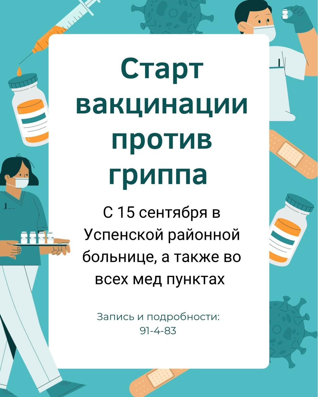 С 15 сентября в Успенской районной больнице, а также во всех мед пунктах стартует сезонная вакцинация против гриппа.