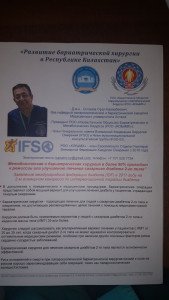 02-16.04.18г. зав. отделением общей онкологии КГП на ПХВ «ПООД» Боромбаев У.Т. прошел обучение на цикле повышения квалификации по теме «Лапароскопическая бариатрическая хирургия» на базе АО «Медицинский университет «Астана».