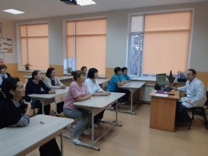 24.10.18г. в рамках Декадника, приуроченного ко Всемирному дню осведомленности о раке молочной железы, врач-онкомаммолог КГП на ПХВ «ПООД» Борисенко С.В. прочитал лекцию на тему «Методика самообследования молочной железы» коллективу Казахско-турецкого лицея