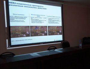 25.10.18г. зав. кафедрой онкологии, д.м.н., профессор Казахстанско – Российского медицинского университета г. Алматы Есентаева С.Е. провела для сотрудников КГП на ПХВ «ПООД» лекцию на тему «Лечение люминального В Her-2 позитивного рака молочной железы»