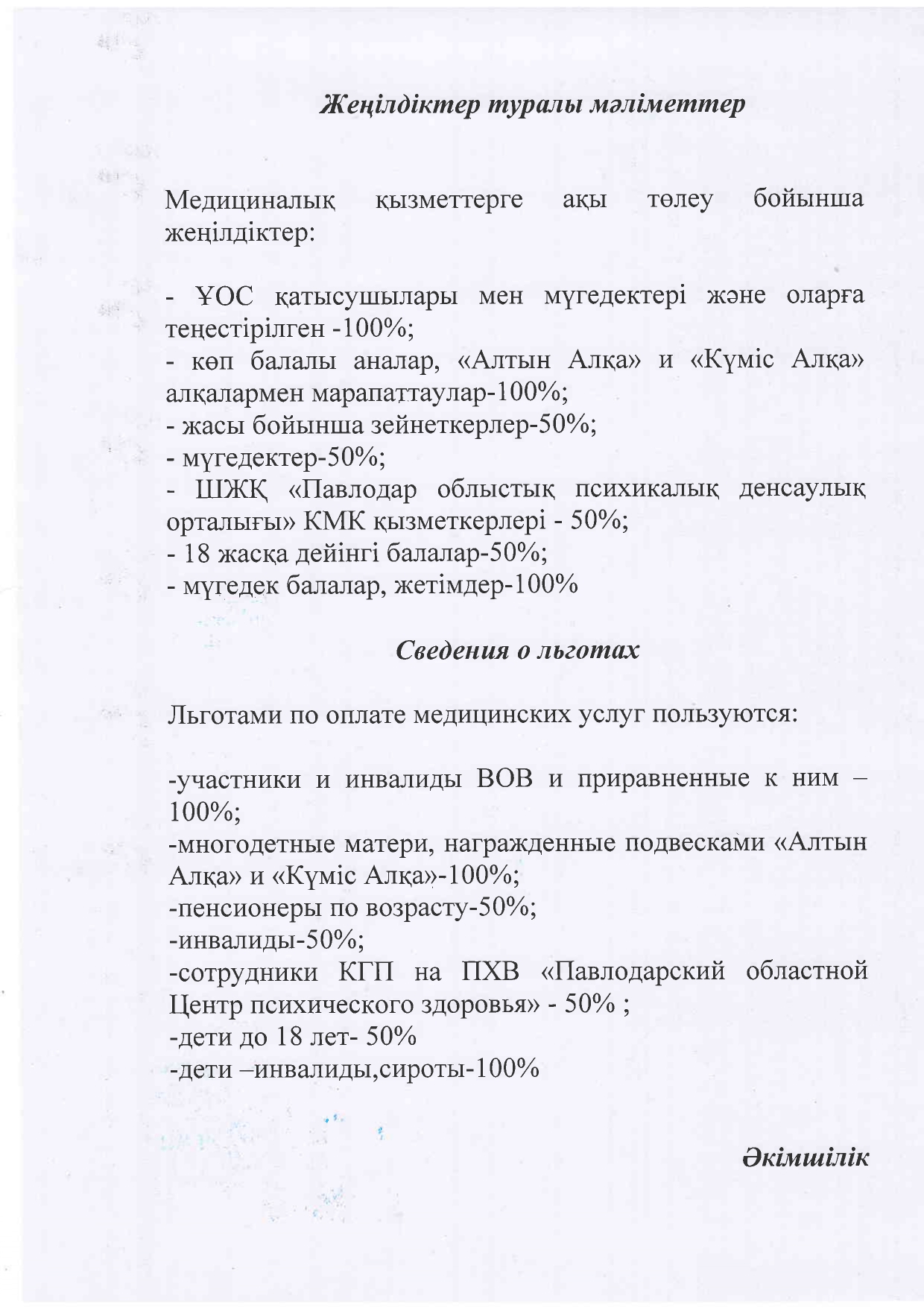 - Сведения о льготах при предоставлении предприятием платных услуг для определенных категорий граждан.
