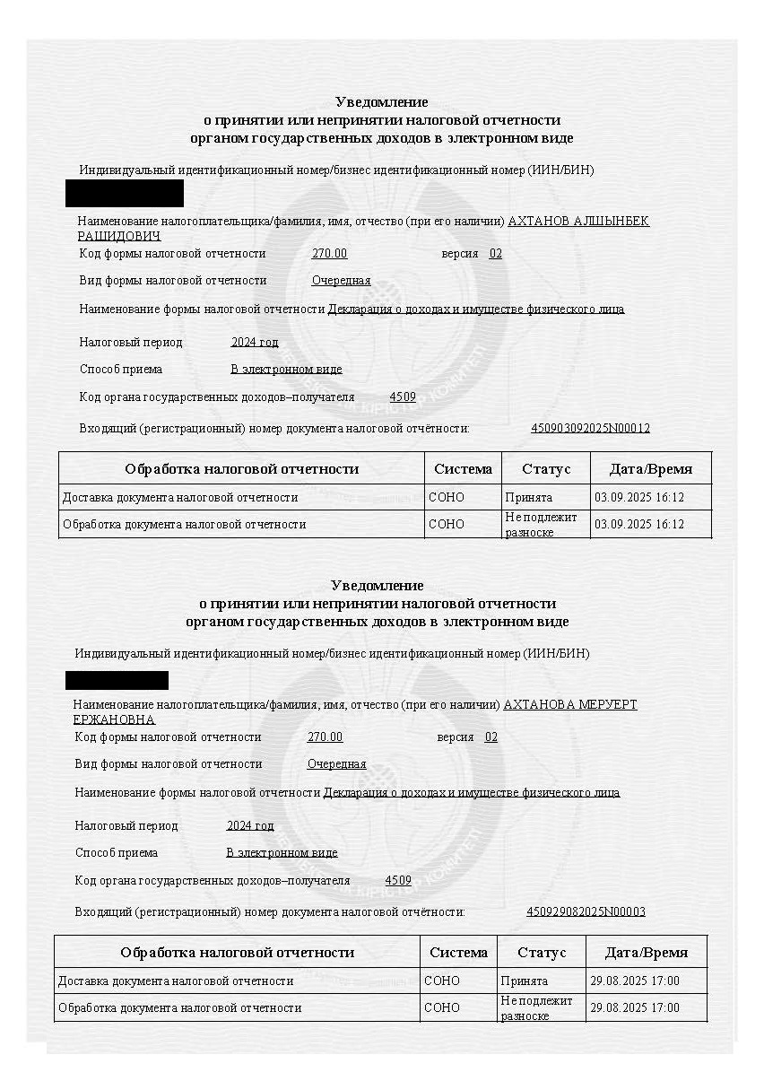 Сведения о доходах и имуществе руководителя и его супругиОтчетный налоговый период: 2024 год В соответствии с пунктом 9 статьи 11 Закона Республики Казахстан «О противодействии коррупции», а также приказом Председателя Агентства Республики Казахстан по противодействию коррупции от 7 февраля 2025 года № 26 (с изменениями, внесенными приказом от 11 ноября 2025 года № 185), на официальном интернет-ресурсе публикуются сведения о доходах и имуществе руководителя организации и его супруги. Субъекты декларирования: Ахтанов Алшынбек Рашидович — руководитель организации Ахтанова Меруерт Ержановна — супруга Сведения, подлежащие опубликованию По результатам анализа деклараций о доходах и имуществе (форма налоговой отчетности 270.00) за отчетный налоговый период сведения, подлежащие опубликованию в соответствии с Перечнем, утвержденным приказом № 26, отсутствуют. В связи с чем публикация сведений о доходах и имуществе не осуществляется. |